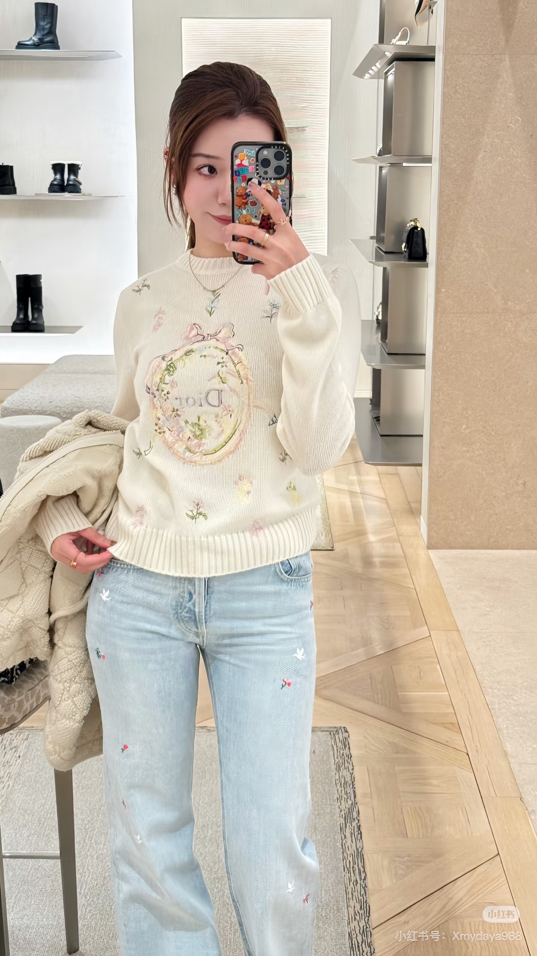 플라워 엠브로이더리 긴팔 니트 (2color)